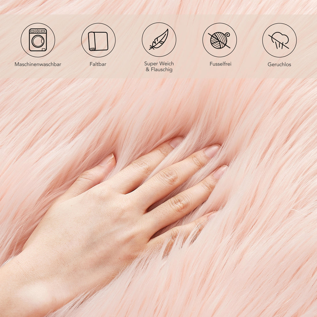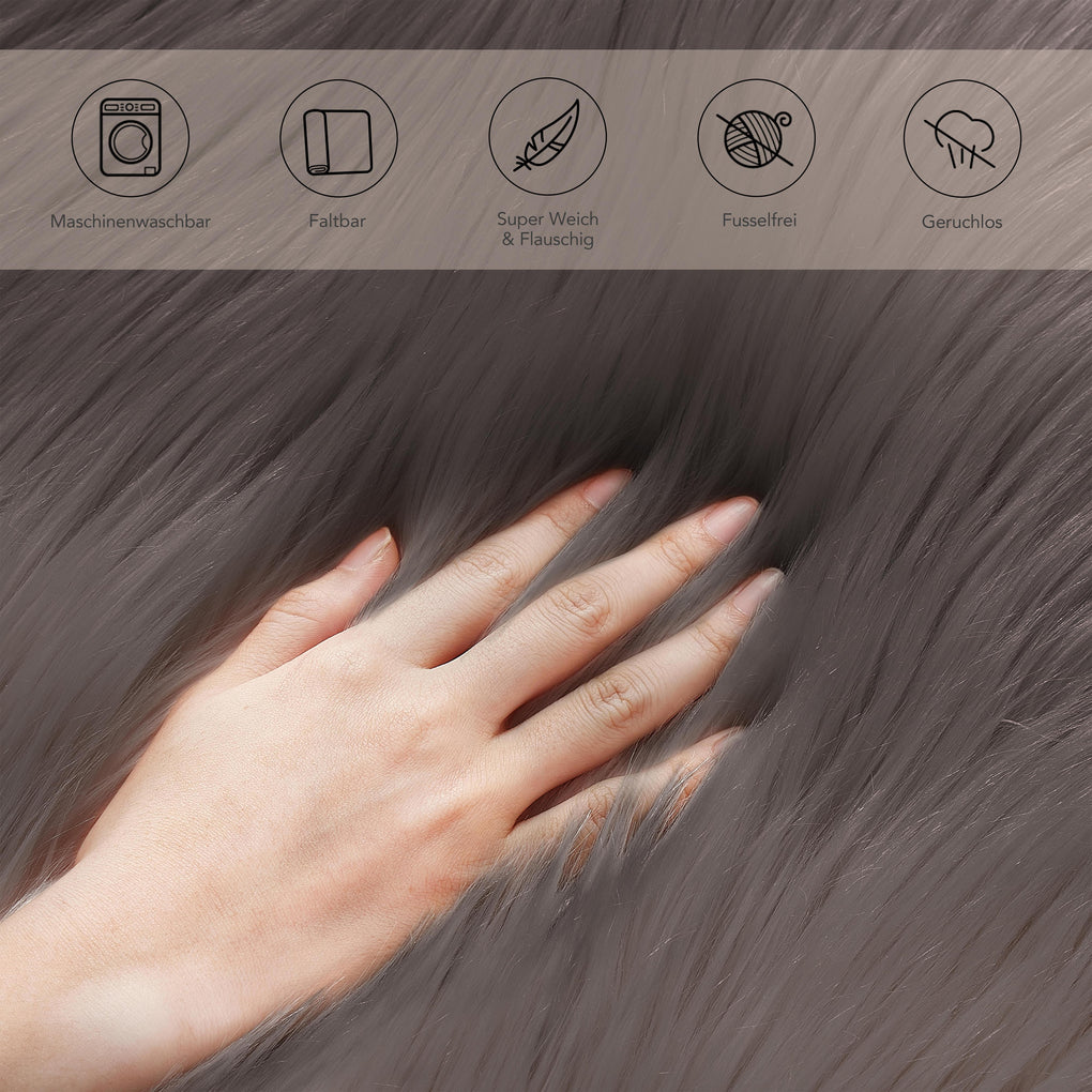 • Pflegeleicht: Flecken lassen sich einfach mit einem feuchten Tuch entfernen. Das Fellkissen ist im Handwäsche-Programm bis zu 30°C waschmaschinengeeignet. Damit das Kissen immer flauschig bleibt, empfiehlt es sich, nur handelsübliche Waschmittel zu benutzen und getrennt zu waschen.